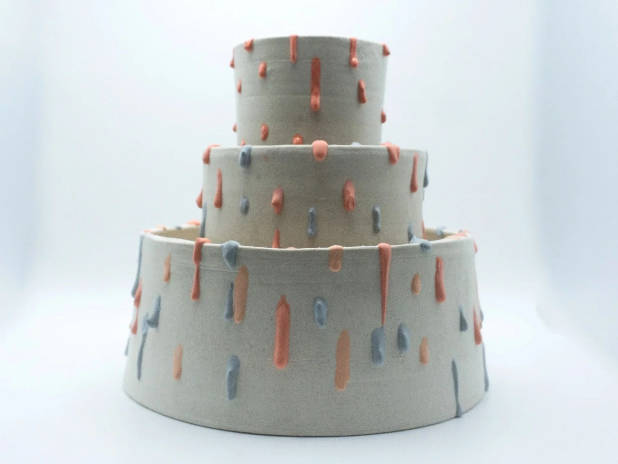 Examples of pieces decorated using drips and slip trailing with colored slip. The piece you will make in the workshop will be a test tile and/or one of your own pieces.